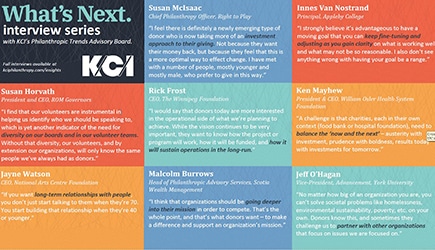 Through our What’s Next Interview Series, Nicole Nakoneshny, KCI’s Lead, Knowledge + Insights conducted in-depth interviews with each member of our Philanthropic Trends Advisory Board.